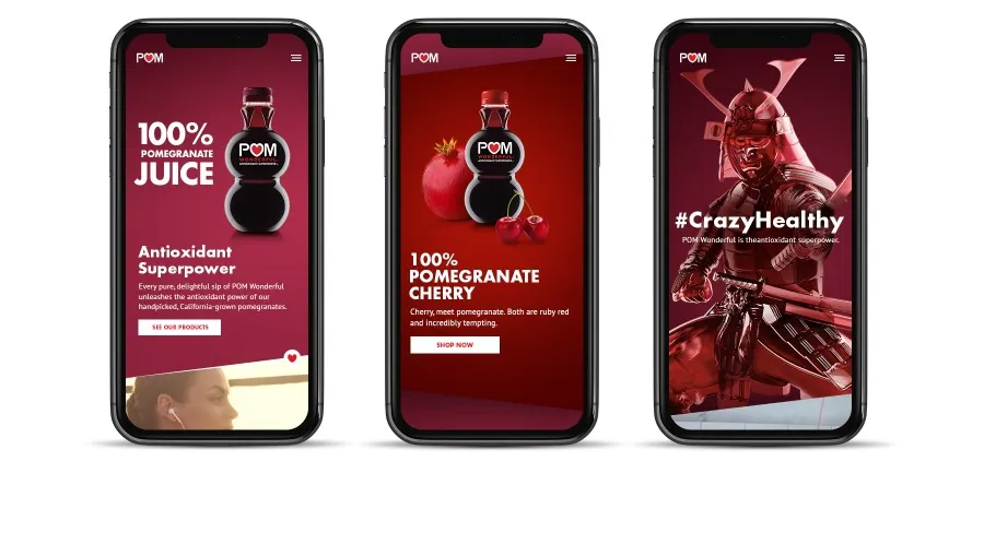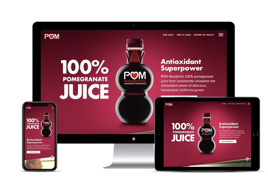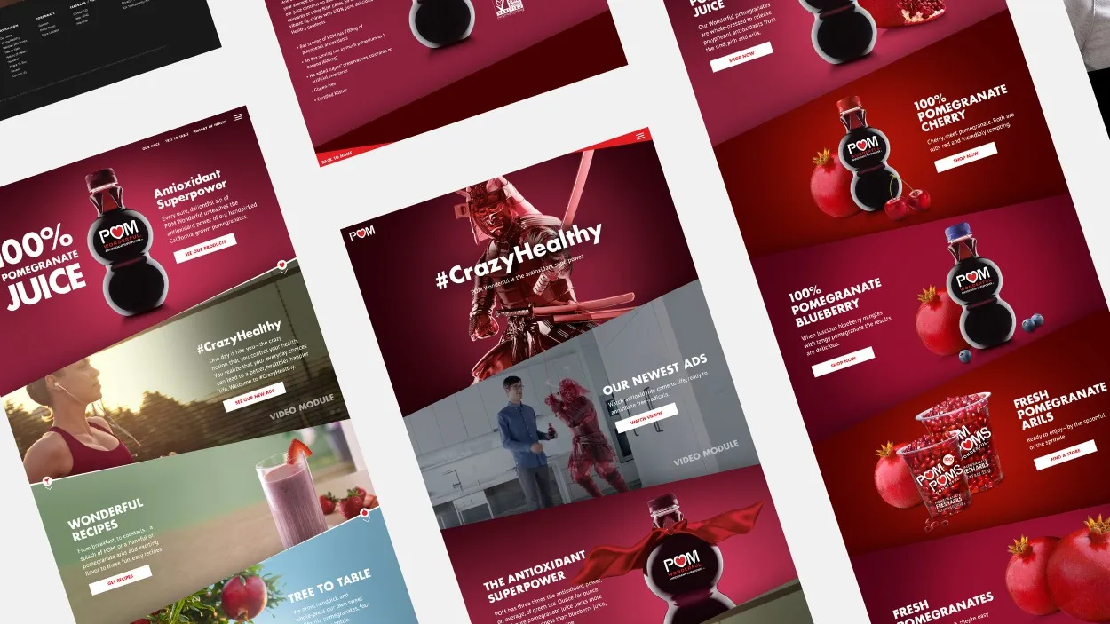 The POM Wonderful website was designed to guide users through the brand’s world—from products and recipes to pomegranate history and the journey from tree to table. I co-led the art direction, creating a responsive experience for both desktop and mobile. Strong typography, bold photography, and dynamic layouts helped bring the brand’s antioxidant-rich story to life, while making its diverse content feel cohesive and easy to explore.