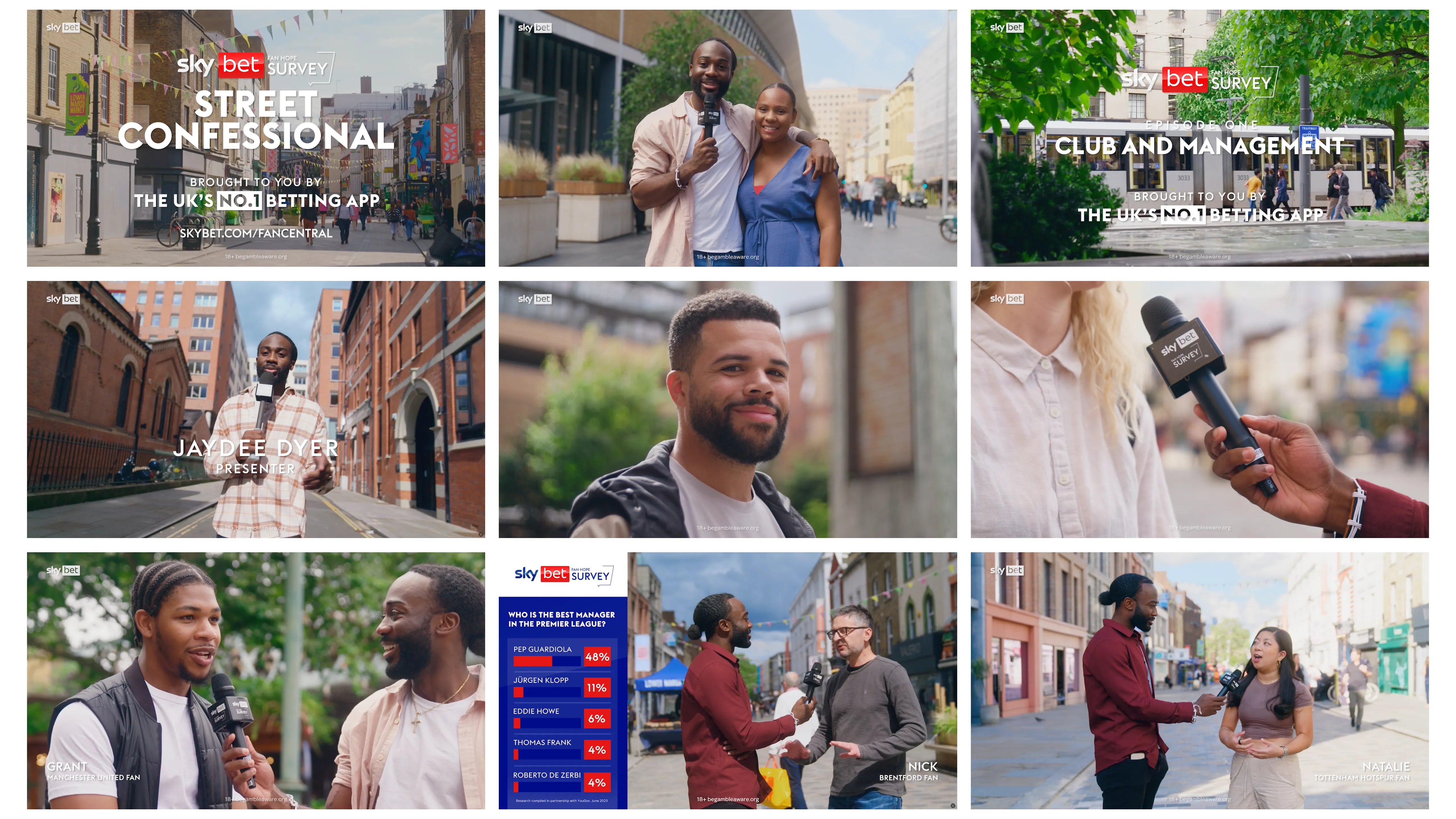 "Street Confessionals" is an exclusive video content series created for Sky Betting & Gaming in collaboration with the English Premier League for the 2023/24 season. This dynamic series captures the raw passion, humor, and insights of fans on the streets, offering an unfiltered glimpse into the heart of football culture.